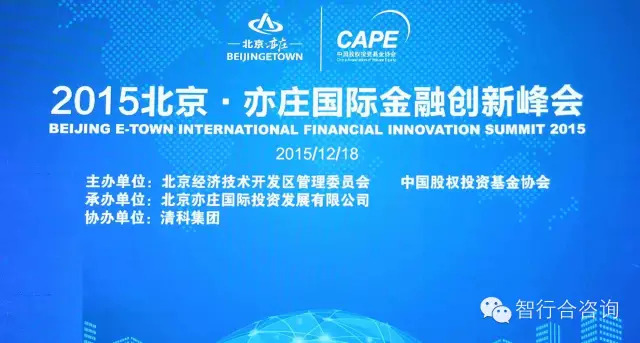 2015年12月18日,由北京经济技术开发区管理委员会、中国股权投资基金协会主办,北京亦庄国际投资发展有限公司承办的“2015北京·亦庄国际金融创新峰会”在北京亦庄顺利召开。智行合作为嘉宾出席了本次峰会。