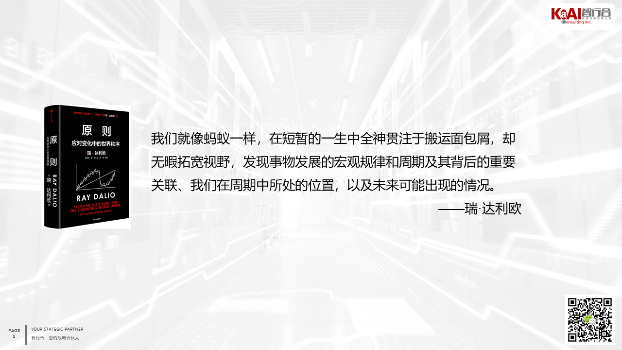 后疫情时代是个什么时代呢?律所管理与后疫情时代的关系是什么?企业家思维,首先要有时空观,从一家律所拉开到整个社会,从现在这个时点拉开到过去-现在-未来。这时候必须要提及今年非常热的一本书——瑞·达利欧的《原则 应对变化中的世界秩序》,他强调充分理解世界的运行方式,理解历史规律及其背后的因素,从而帮助自己理解和应对当前的事态。